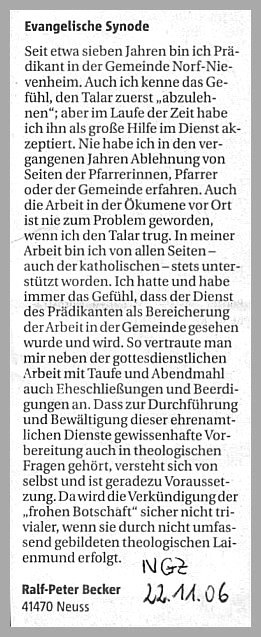 Radiobeitrag über Prädikanten im Rahmen des Bürgerfunks der NRW-Lokalradios